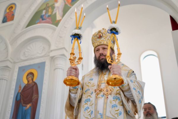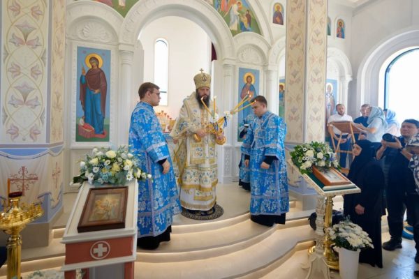 По окончании чина освящения архипастыри возглавили служение первой Литургии в новоосвященном храме.