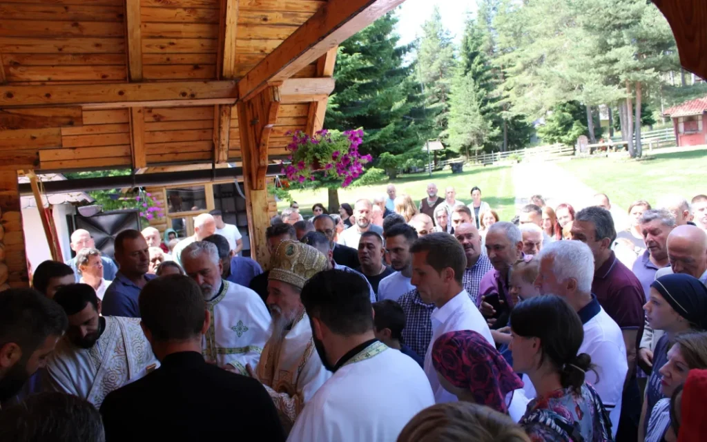 Након заамвоне молитве пред храмом су освештани славски дарови и преломљен славски колач које је припремио Вук Опанчина из Мушковине код Нове Вароши са породицом, као домаћини овогодишње славе.