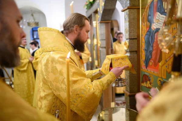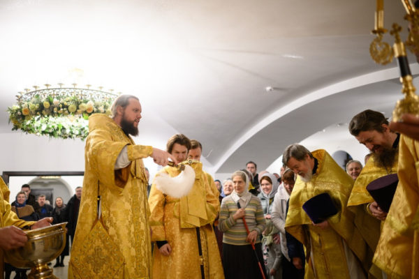 Чин малого освящения и Божественную литургию совершил управляющий Северо-Западным и Северным викариатствами, Председатель Финансово-хозяйственного управления Русской Православной Церкви митрополит Наро-Фоминский Никандр.