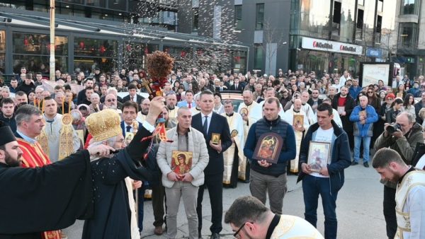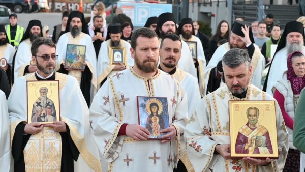 Његово Високопреосвештенство Митрополит шумадијски г. Јован и братство Саборног храма у Крагујевцу су организовали у Недељу Православља, 1. марта 2026. године, литију у част победе коју је Православна Црква извојевала после дуге борбе над онима који су свете иконе избацивали и протеривали из храмова и домова.