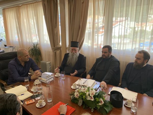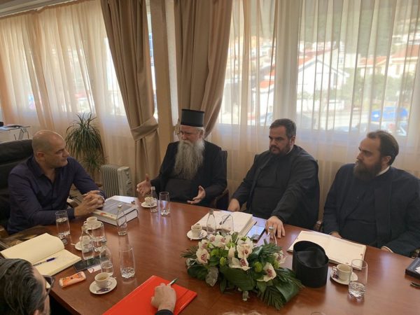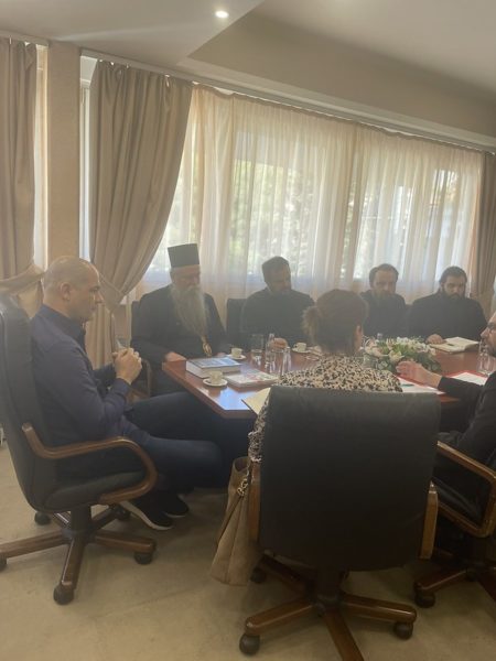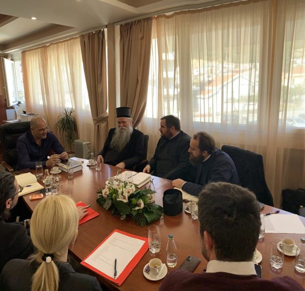 Митрополит Јоаникије и градоначелник Будве Мило Божовић на састанку о организацији научног скупа о државно-црквеном праву