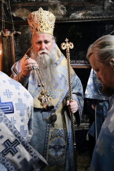 Његово високопреосвештенство Митрополит црногорско-приморски г. Јоаникије данас, 7. априла 2023. љета Господњег, на празник Благовијести, служио је Свету службу Божију у Горњем Острогу поред моштију Светог Василија Острошког.