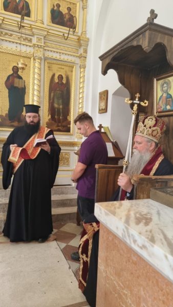 10/09/2024 10/09/2024 Његово Високопреосвештенство Архиепископ цетињски Митрополит црногорско-приморски и Егзарх свештеног Трона пећкога г. Јоаникије данас је у цркви Светог Георгија на цетињском Ћипуру у свету тајну брака увео младенце Луку Бјеловића и Јасну Радак. У чину вјенчаеа учествовали су и протојереј Александар Лекић, јереј Игор Пешикан и јерођакон Сионије (Зорић). Честитајући младенцима Митрополит Јоаникије је рекао...