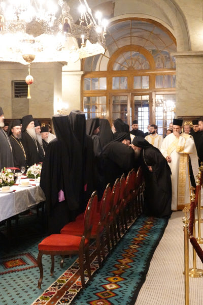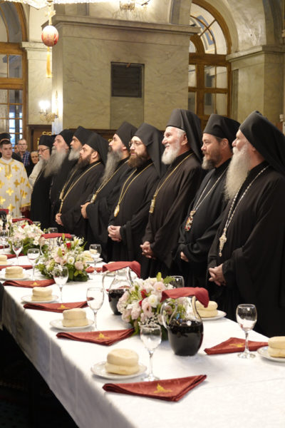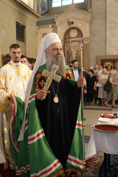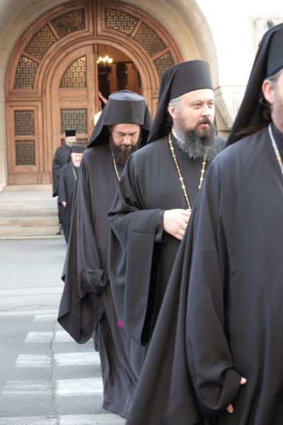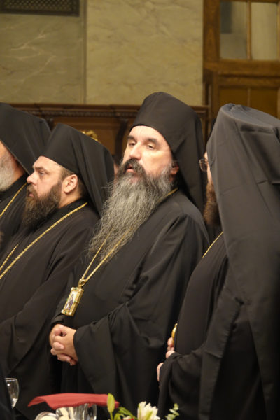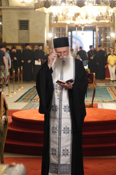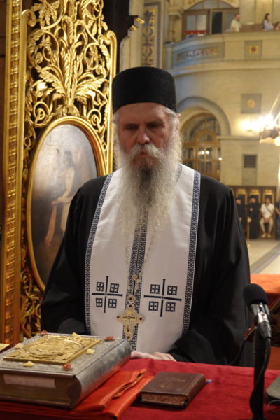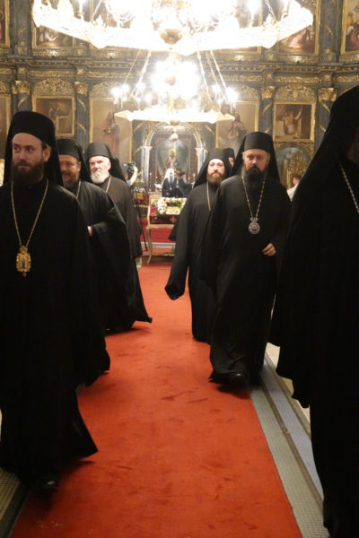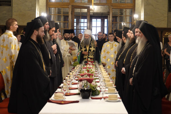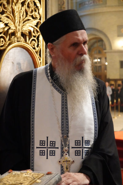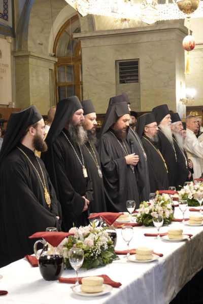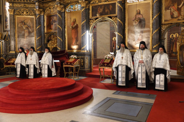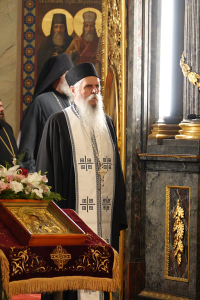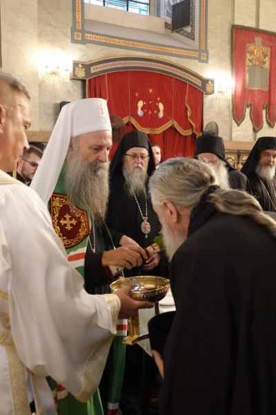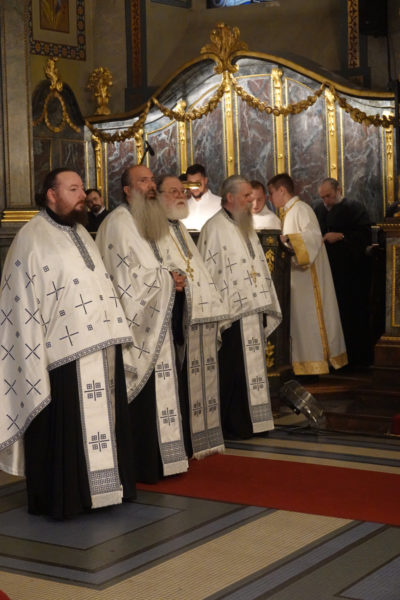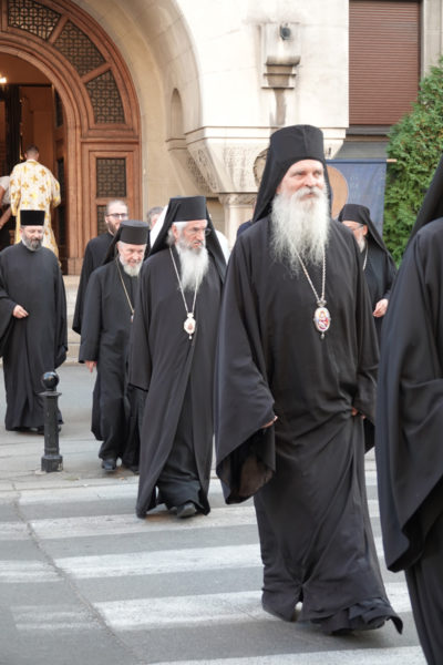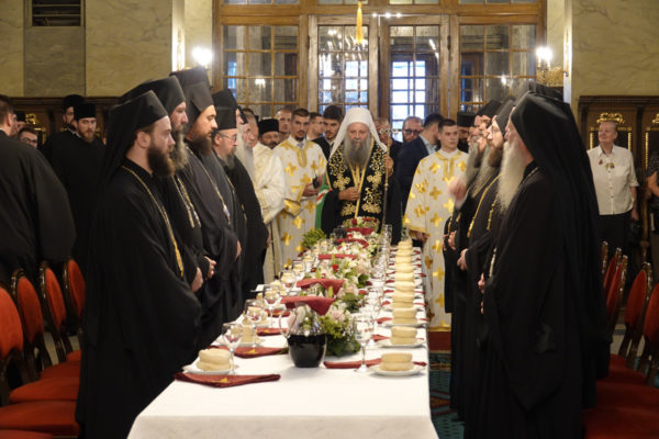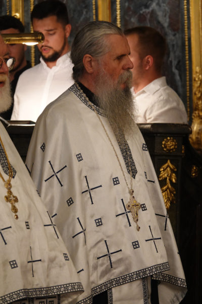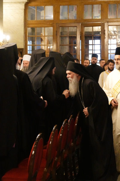 Светејшем Патријарху су саслуживали високопреосвећна господа митрополити: скандинавски Доситеј, врањски Пахомије, шумадијски Јован, зворничко-тузлански Фотије, рашко-призренски Теодосије, далматински Никодим; као и преосвећена господа епископи: горњокарловачки Герасим, осечкопољски и барањски Херувим, ваљевски Исихије, шабачки Јеротеј, западноевропски Јустин, умировљени канадски Георгије, јегарски и изабрани британско-ирски Нектарије, марчански Сава, новобрдски Иларион, липљански Доситеј и топлички Петар.