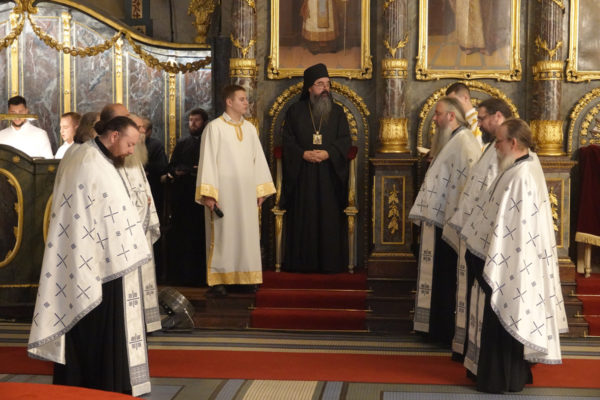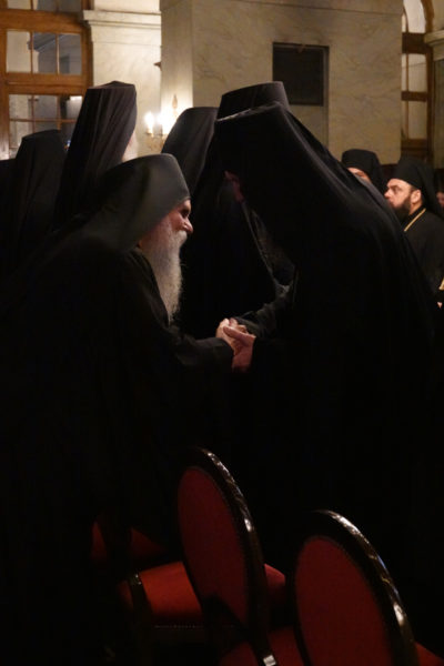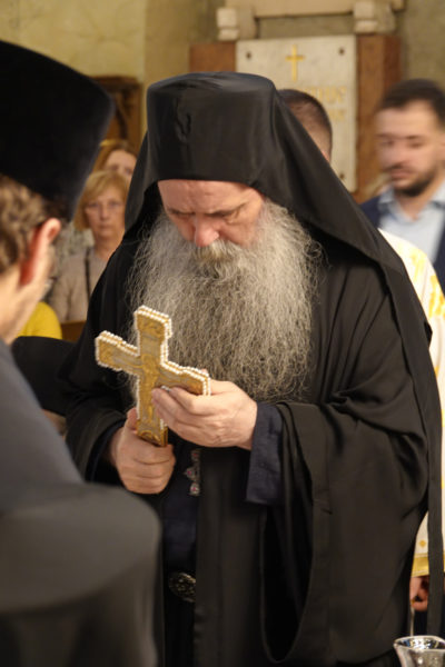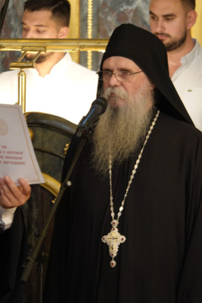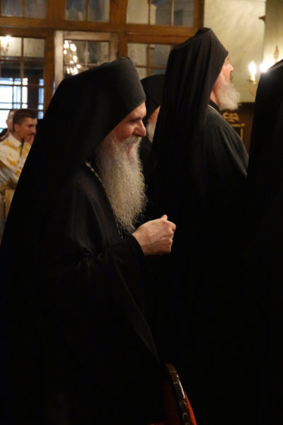 Наречени Епископ јенопољски је затим началствовао вечерњим богослужењем, у молитвеном присуству Његове Светости, архијереја, свештенства, монаштва и верног народа. Међу присутнима били су и Високопреосвећени Митрополит милешевски г. Атанасије; архимандрит Пајсије, игуман Цетињског манастира и изабрани Епископ диоклијски; архимандрит Данило, директор Патријаршијске управне канцеларије; као и протојереј Ђорђе Стојисављевић, шеф Кабинета Патријарха српског.