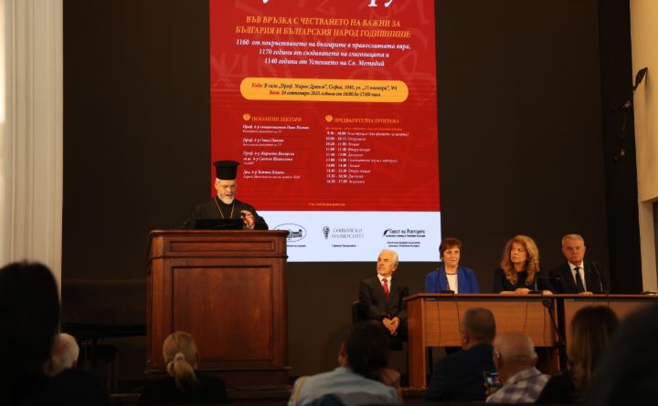 Три от големите годишнини (1160 години от покръстването на българите, 1170 години от създаването на глаголицата и 1140 години от Успението на Св. Методий), които отбелязваме през настоящата година, събраха богослови, историци и общественици на научен форум в столицата на 24 септември. Събитието се състоя в зала „Проф. Марин Дринов“ на БАН. На него присъстваха Негово Високопреосвещенство Западно- и Средноевропейският митрополит Антоний, вицепрезидентът Илияна Йотова, Румен Петков, председателят на БАН чл.-кор. Евелина Славчева и проф. Стефан Стефанов – президент на Международната фондация “Св. св. Кирил и Методий”.