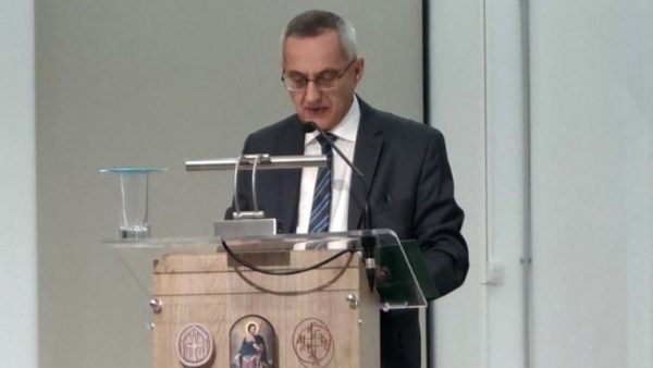 Прво предавање је одржао г. Константин Котцијопулос, професор Богословског факултета у Солуну, на тему Нова епоха, постхуманизам и вештачка интелигенција.