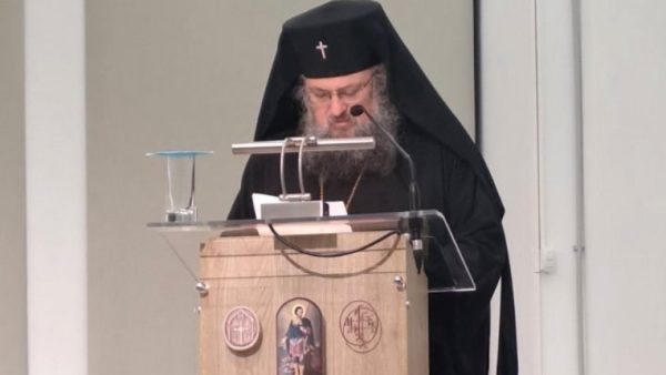 Учеснике је поздравио и домаћин скупа, Митрополит пирејски г. Серафим, који је званично отворио рад научне конференције посвећен савременим сектама и јересима у оквиру New Age феномена и том приликом дао осврт на идеологију трансхуманизма у контексту дате теме. Отварању конференције су присуствовали: Митрополит китирски г. Серафим, Митрополит хијски г. Марко, Епископ теспијски г. Павле, викар Архиепископа атинског и све Јеладе.