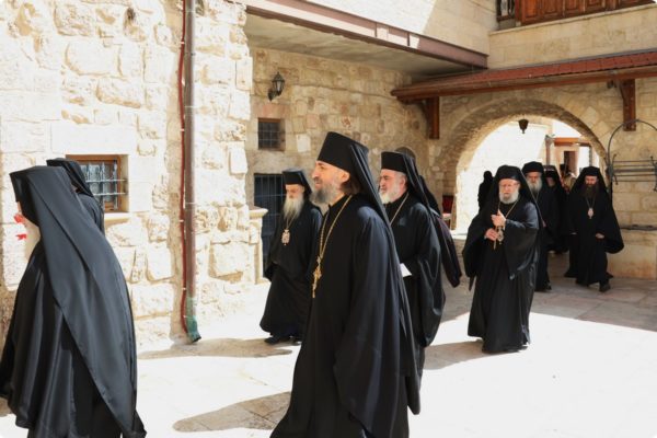 Блаженнейший Патриарх Феофил тепло приветствовал русское духовенство и горненских сестер, прибывших в Иерусалимскую Патриархию, поблагодарил их за праздничные подарки и похристосовался с ними.