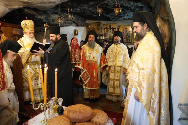 Его Блаженству сослужили иерархи Иерусалимского Патриархата, клирики Святогробского братства, русско-, греко- и арабоязычные священнослужители Иерусалимской Православной Церкви.