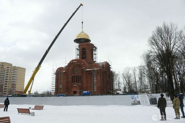 Купол установили на главный храм Росгвардии, строящийся в Балашихе, сообщили РИА Новости в пресс-службе ведомства.