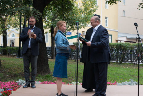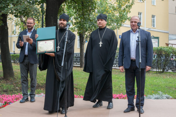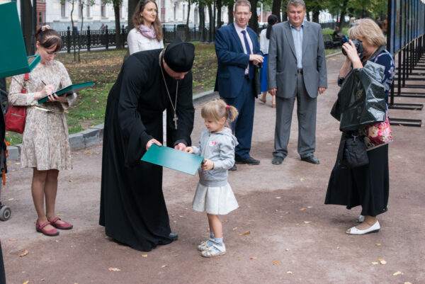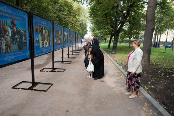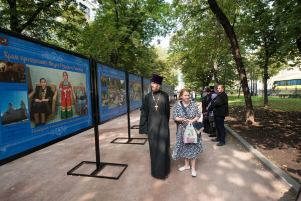 Сегодня, 4 сентября, на Гоголевском бульваре в Москве состоялось торжественное открытие фотовыставки под открытым небом «Помогая другому – помогаешь себе». Экспозиция посвящается социальным проектам новых приходов, входящих в Программу строительства православных храмов в Москве.