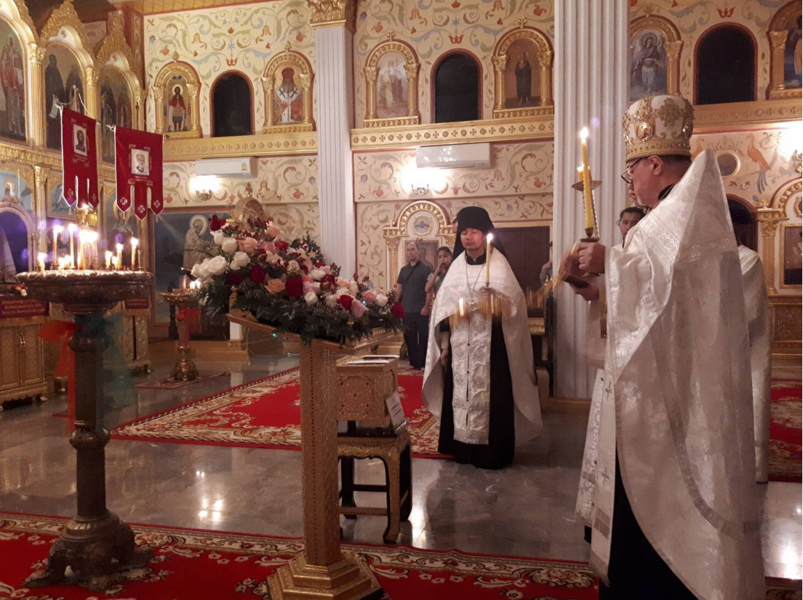 В храме Покрова Пресвятой Богородицы в Паттайе всенощное бдение и Божественную литургию совершили настоятель храма иерей Иоанн Мороз и протоиерей Петр Кадомцев, заштатный клирик Томской епархии. За ночным праздничным богослужением молились около 80 человек, тридцать из которых приступили ко Святому Причастию.