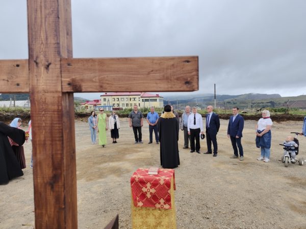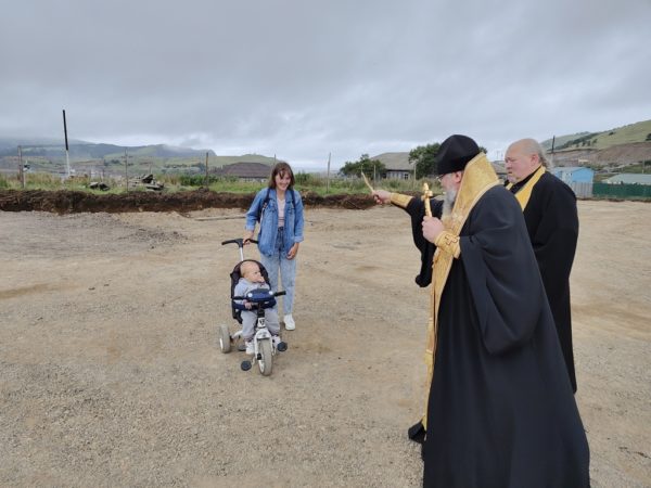 По окончании богослужения архиепископ Никанор поздравил духовенство, благотворителей и прихожан с началом строительства храма.