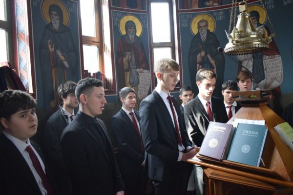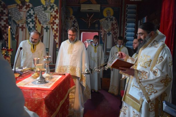 Високопреосвећеном Митрополиту саслуживали су протојереј Дејан Крстић, ректор нишке Богословије Светих Кирила и Методија, протојереј Бобан Стојковић, старешина храма и професор Богословије, јереј Љубиша Костић, парох при овој светињи и професор Богословије, јереј Стефан Цинцаревић, парох пети при храму Светог Цара Константина и Царице Јелене у Нишу, јеромонах Пантелејмон Мијаиловић, ђакон Стефан Пекић и ђакон Предраг Владисављевић. Појали су ученици Нишке богословије.