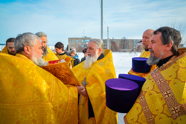 Затем к верующим обратился благочинный Закамского округа протоиерей Андрей Дубровин, освящавший место строительства храма.