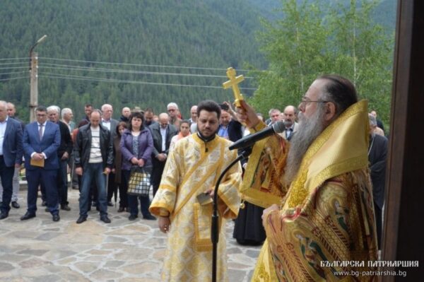 От ранно утро, жителите и гостите на селото се бяха събрали при новопостроения храм, в очакване на епархийския митрополит, и молитвено съучастваха в първата света Литургия, както и в предхождащия я чин на освещаване на храма. Митрополит Николай положи в основата на св. Престол мощи на светите Баташки мъченици, според чина при освещеване на храм. Храмът се оказа твърде малък за събралото се множество, които се молеха в двора на храма.