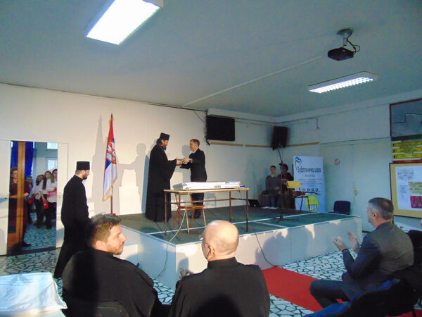 У спомен на данашњи дан освећења школе епископу Стефану је на дар директор школе поклонио жезал, симбол архијерејске власти.