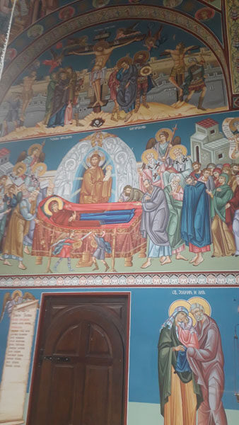 Пред почетак свете Литургије, Владика је извршио чин благосиљања живописа. Прелеп живопис чије су обележје топле боје, ведри ликови и мноштво разиграних детаља осликаних у византијском стилу, дело је протомајстора Дејана Камиџорца и његових сарадника – Ненада Матовића и Стефана Новаковића. Протомајстор Дејан Камиџорац је живописац који се учио код ученика пахомејске школе иконописа са Свете Горе и представник је надалеко чувене жичке школе живописа. У параклису су приказани централни догађаји Христове икономије спасења (Божић, Преображење, Распеће, Васкрс и Вазнесење тј. Други Христов Долазак), централни догађаји из животописа Пресвете Богородице (Мала Госпојина, Ваведење, Благовести, Успење) укључујући ту и велику сцену „Богородица Ширшаја Небес“ у златној позадини која се налази у олтарској апсиди, као и ликови неколико одабраних светитеља.