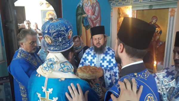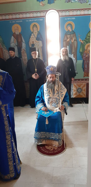 У оквиру Литургије мноштво верних се причестило, учествујући и на тај начин у празнику који је једна од слава храма. Владика је благословио славски колач и жито и одржао је пригодну беседу у оквиру које је поручио да је Мајка Божја заштитница свих оних који верују да је Она родила Сина Божјег ради спасења света. Владика је пастирски позвао сабране да следе пример светих стараца Порфирија и Пајсија који су позивали верне да Пресвету Богородицу не прослављају само умом већ и срцем и да јој приносе малу жртву тако што ће свакога дана издвојити по десетак минута свога времена како би прочитали Благовештенски Акатист Пресветој Богородици који почиње чувеним кондаком: