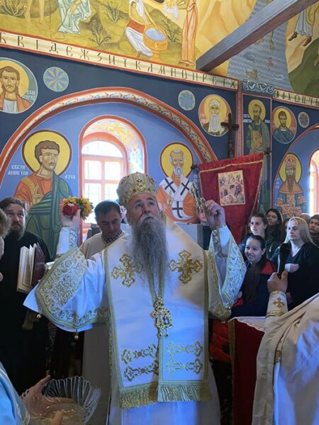 Његово Преосвештенство Епископ будимљанско-никшићки г. Јоаникије служио је 27. октобра 2019. године, на празник Преподобне мати Параскеве – Свете Петке, свету архијерејску Литургију у храму Благовести Пресвете Богородице у Пољима код Мојковца.