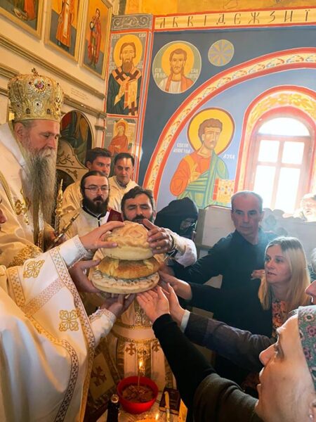 Владика је, пре свете службе Божје, освештао живопис у храму Светих Благовести, рад Веселе Маџгаљ из Мојковца. Молитвено сабрање увеличало је рукопроизвођење чтеца Никодина Раденовића, лекара специјалисте из Берана, у чин ипођакона.