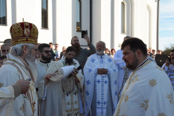 После свете Литургије Епископ се обратио верном народу наглашавајући значај светог чина освећења храма: -Ваш дивни свети храм представља парчете Неба на земљи. Учините га још лепшим тиме што ћете редовно учествовати у богослижењима и животу Цркве.