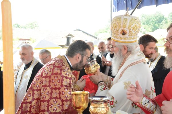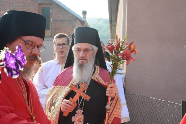По завршетку свете Литургије, Владика је уз пуно љубави и радости према верном народу, одржао пригоду беседу. “Данас смо осветили овај ваш мали храм, мали по простору, по квадратури, али за Духа Светога и Бога у Тројици, нема ни малог ни великог храма, већ је битно да се граде из љубави према Богу, и у спомен свих светих. Ми храмове подижемо и за оне који су живели пре нас, они се данас радују што овде постоји храм Божји, Дом Божји”. Владика је у наставку беседе додао: “Добро се сећам када сте ме ваш свештеник Срђан и ви позвали да по први пут дођем овде, где сте ми казали да постоји место где су се ваши преци молили Богу, и заиста осетио сам молитве ваших предака. Никад нећу заборавити радост ваших лица, када сте се обрадовали што ћете имати овај храм. Ставите у срца ваша овај храм и долазите у њега, да учествујете у богослужењу, да се радују ваши преци на небу што нисте изневерили њихову веру. Кажите Богу шта вас тишти, Бог је свуда присутан, а поготово у храму”.