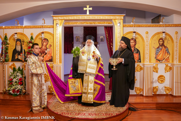 Вечером в среду 18 сентября Митрополит Верийский, Наусский и Кампанийский Пантелеймон отслужил чин Водосвятия в часовне св. Амфилохия Патмосского в духовном центре св. храма св. Константина и Елены и св. Никодима Верийского. Затем Митрополит принял участие в праздничной Вечерне, посвященной памяти обретения мощей св. Амфилохия Патмосского и произнес пастырскую проповедь.
