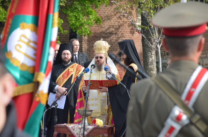 Викарният епископ поръси със светена вода знамената и представителните воински части на Българската армия. В тържествения ритуал участва и Гвардейският представителен духов оркестър, знаменен блок със знамената-светини и представителни блокове на Националната гвардейска част.