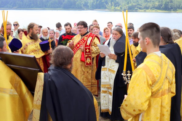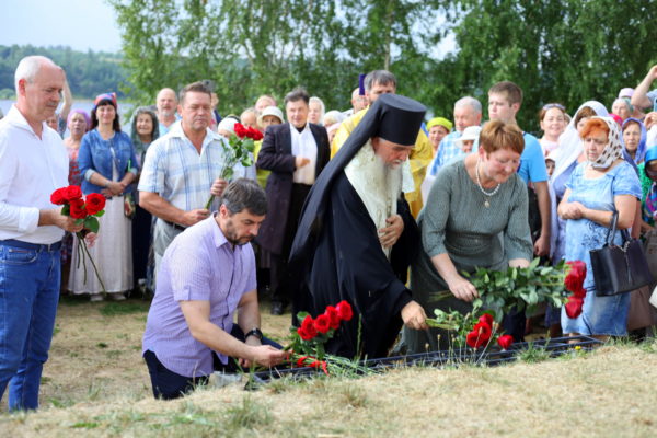 По окончании богослужения прихожане и духовенство во главе с епископом Вениамином прошли крестным ходом от Богоявленского храма к памятнику праведному Феодору Ушакову и преподобному Феодору Санаксарскому. Чин освящения и церемония открытия этого памятника состоялись ровно пять лет назад. Скульптурную композицию передал в дар Рыбинскому району Фонд апостола Андрея Первозванного.