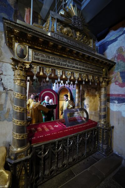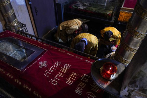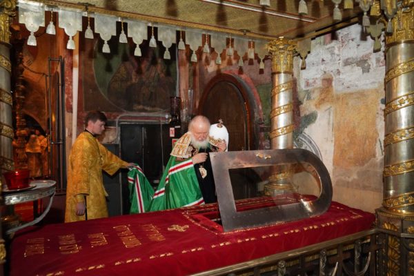 Будем молиться святителю Петру и о граде Москве, чтобы молитвы святителя достигли престола Божия и град наш сохранялся в мире и духовной силе, чтобы правители наши сохраняли мудрость и веру православную, чтобы народ наш, объединенный вокруг града Москвы, сохранял единство не только политическое, — потому что политические схемы приходят и уходят, — а то духовное единство, которое связывает всех нас с Кремлем и этим Успенским собором, кафедральным собором всея Руси. И да будет так! Будем об этом просить Господа и святителя Петра, митрополита Киевского, Московского и всея Руси, чудотворца, и его молитвами да приклонит Господь милость Свою к Отечеству нашему, народу нашему и Церкви нашей. Аминь.