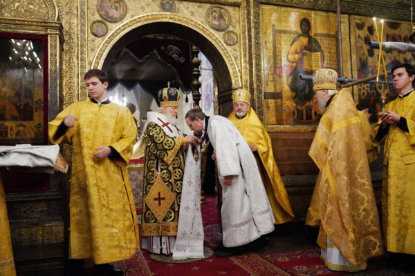 Поэтому сегодня наша молитва святителю Петру — о соединении Святых Божиих Церквей, о единомыслии среди всех Поместных Православных Церквей. Но, конечно, особая наша молитва — о Церкви Русской, о том, чтобы Господь хранил нашу Церковь от внутренних разделений и расколов, хранил наш епископат и духовенство в единомыслии, в осознании той огромной роли и того огромного значения, которое сегодня имеет Русская Православная Церковь для сохранения Православия во всем мире. Осознавая эту ответственность с полным смирением, мы не стремимся ни к какому первенству, в чем нас иногда упрекают люди, стремящиеся расширить расстояние между Церковью Русской и иными Церквами. Ни к какому первенству мы не стремимся, со смирением занимаем пятое место, которое было определено. Но никакие места в Православной Церкви не являются лучшими или худшими, более значимыми или менее значимыми, но вся Церковь Православная в совокупности несет в себе такую благодать, которая способна сохранять истину непогрешимой. И потому, несмотря на нестроения, которые постигли сегодня Церковь Православную и которые являются результатом политического влияния на определенные Православные Церкви, не убоимся сегодня об этом сказать. Будем молиться и делать все для того, чтобы восстановилось полное общение среди Поместных Православных Церквей, чтобы вновь явились единомыслие и возможность совместно совершать богослужения.