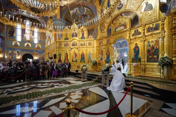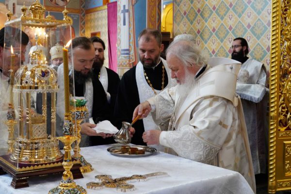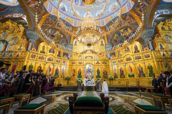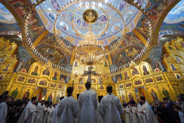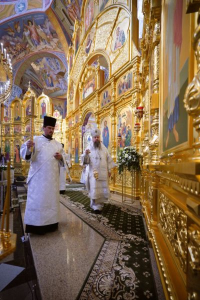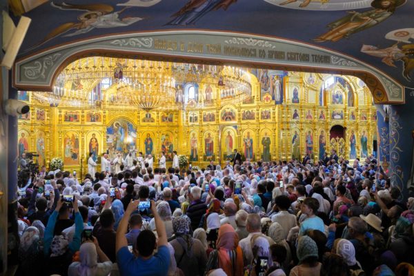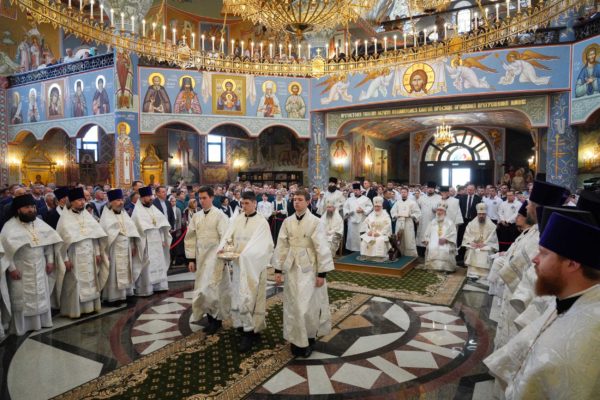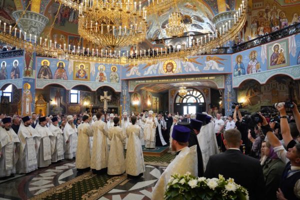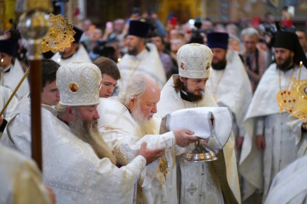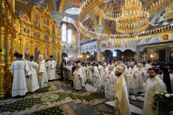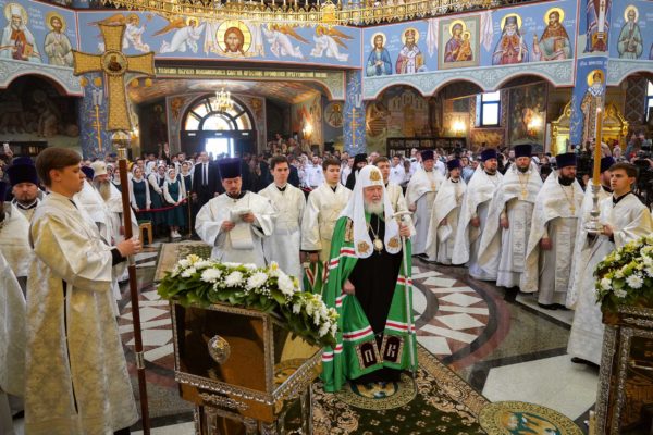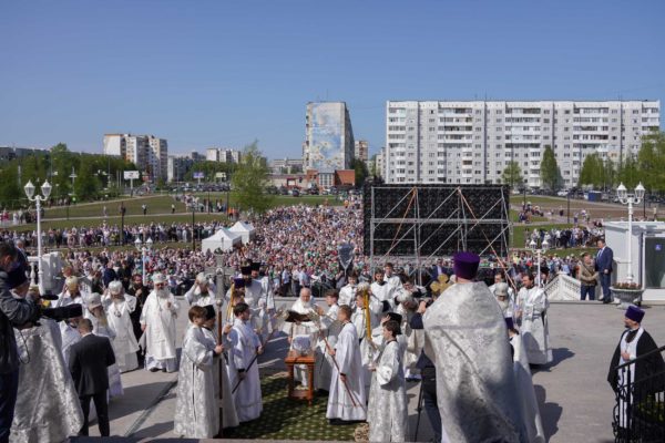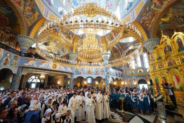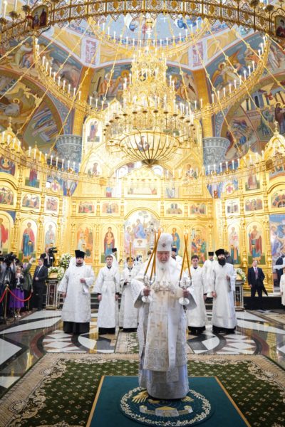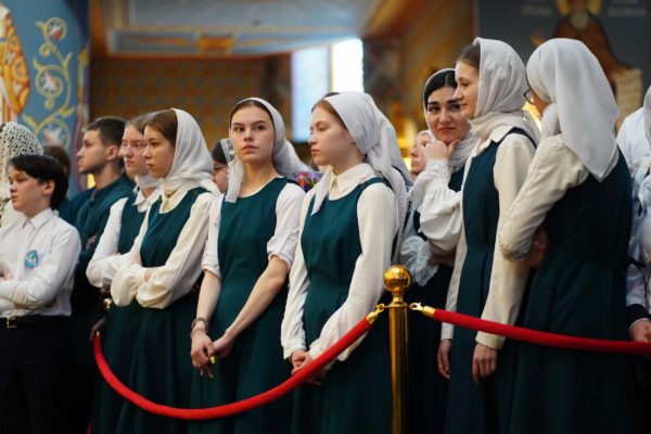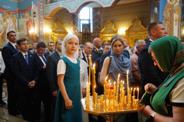 Дай Бог, чтобы народ наш шел по этому пути, а ведь большинство и идет по этому пути, хотя, конечно, далеко не все. Но этот путь становится непонятным для тех, кто взирает на нас через западные границы, потому что там нет такого целеполагания. А потому напряжение, которое сегодня возникло между Россией и Западом, — это не просто политическое недоразумение. Сталкиваются разные системы ценностей, разные системы целеполагания. У нас разное отношение к вере в Бога. Мы верим, что мы на правильной стороне, на светлой стороне истории, и дай Бог, чтобы эта сторона освещалась светом Божественной истины. Да поможет нам Господь сохранять любовь к Отечеству, к Церкви и друг к другу, разделять друг с другом свои ресурсы, будь то большие или малые, помогая друг другу и поддерживая друг друга. И да поможет нам Господь с особой заботой, вниманием и любовью относиться к подрастающему поколению. Да помогает всем нам Господь бережно относиться к заветам тех, кто передал нам свою веру, и осуществлять эти заветы во славу Божию, во славу Церкви и Отечества и в наше спасение. Аминь.