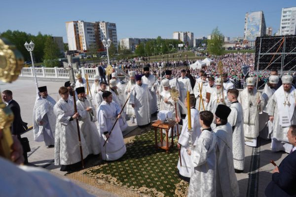 28 мая 2023 года, в Неделю 7-ю по Пасхе, святых отцов I Вселенского Собора, Святейший Патриарх Московский и всея Руси Кирилл совершил Божественную литургию в Свято-Троицком соборе г. Сургута. По окончании богослужения Предстоятель Русской Православной Церкви обратился к верующим с Первосвятительским словом.