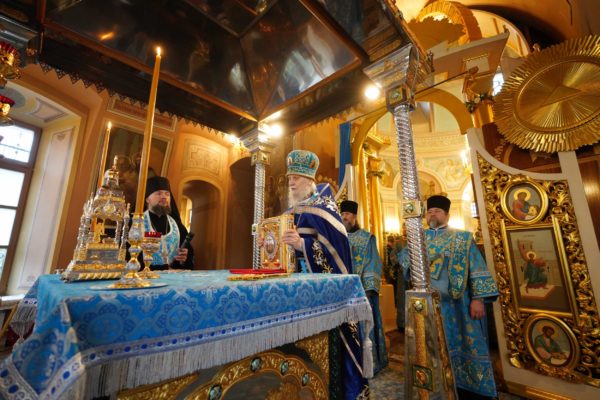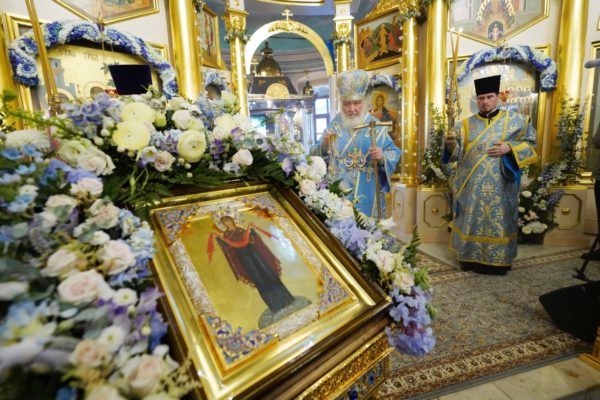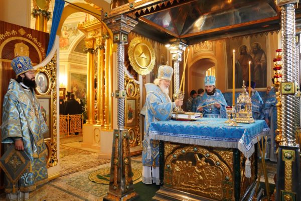 И мы знаем, что произошло, когда народ наш, наученный зловредным, злоименным человеческим разумом, отказался от Бога, от Богородицы, предал все свои духовные ценности, устремляясь к построению счастливой жизни без Бога и без Его помощи, опираясь только на человеческую силу. Никакая человеческая сила, никакая государственная организация, никакие достижения науки не могут сделать человека счастливым — это аксиома. Это скажет величайший ученый, у которого что-то не получилось в личной жизни. Это скажет успешный государственный деятель, у которого совесть неспокойна от того, что происходило на его жизненном пути. И когда мы молимся пред Покровом Пресвятой Богородицы, мы должны знать, что этот Покров есть выражение любви Пресвятой Богородицы к народу Своему, к Церкви и к Отечеству нашему.