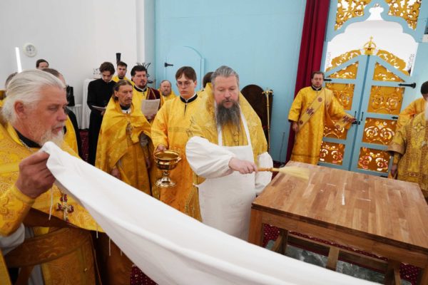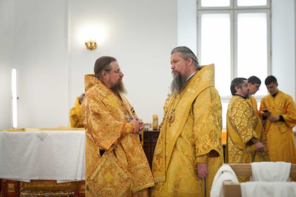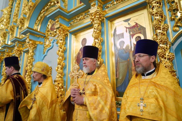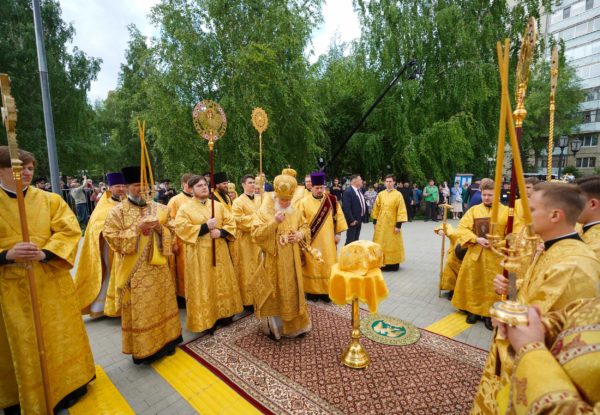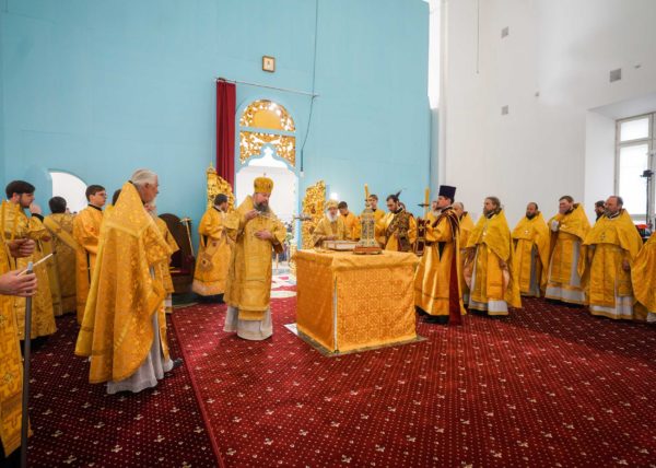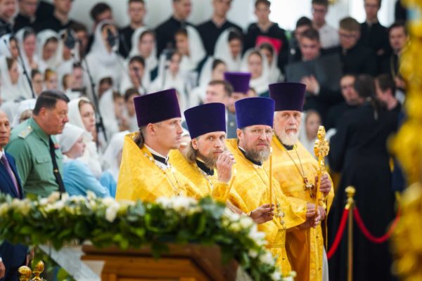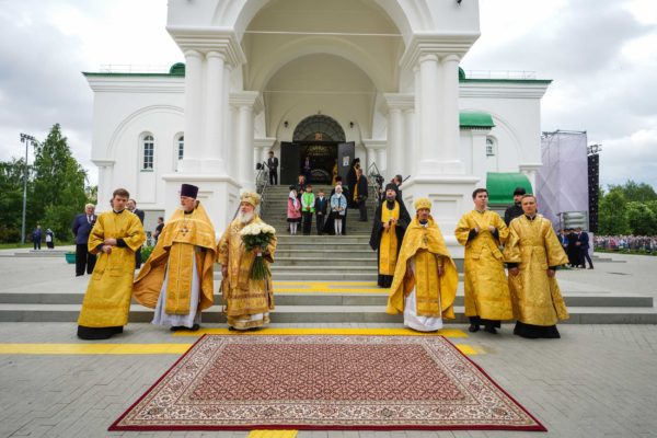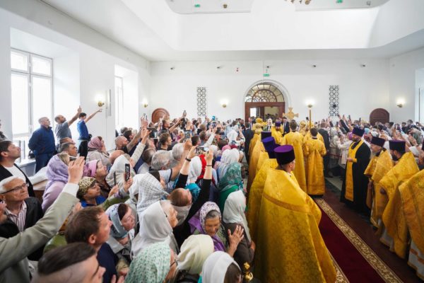 Еще раз хотел бы сказать о том, что каждый раз, когда читается Евангелие на Литургии, именно это Евангелие пересекается с контекстом, с теми условиями, в которых совершается служба, с тем временем, в которое люди молятся. Так и сегодняшние слова: кто исповедает Меня пред людьми, того исповедаю и Я пред Отцом Моим Небесным; а кто отречется от Меня пред людьми, отрекусь от того и Я пред Отцом Моим Небесным. Исповедники, в том числе жившие на этой земле, не отреклись от Господа. Даже когда взрывался собор, даже когда казалось, что ничто никогда не возродится, они вопреки всему сохраняли веру. Наверняка их называли фанатиками, отсталыми людьми, пережитками прошлого — как только ни называли! Мое поколение еще помнит, как называли нас, православных людей, во времена государственного атеизма. А ведь те люди, которые верили в возрождение Церкви Божией, которые жизнь свою, упование свое вручили Промыслу Божественному, оказались победителями, и в этом замечательном городе возрождаются святые Божии храмы.