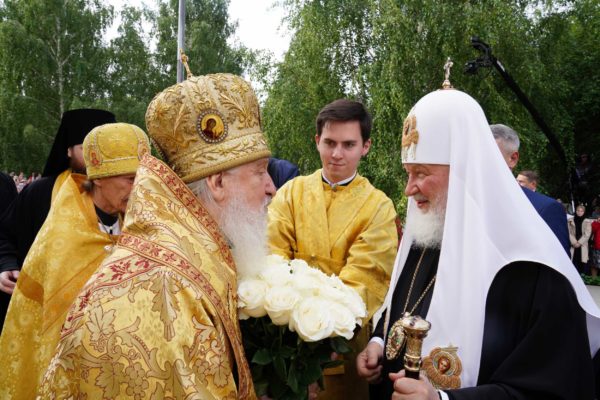 Пусть благословение Божие пребывает над этим градом. Радуюсь, владыка, что имел возможность своими глазами увидеть, как развивается область, как многое изменилось с тех пор, когда я был здесь в последний раз. И город совсем стал другим, похорошел; люди стали выглядеть лучше, красивее одеваться; молодежи много в храме Божием. И будем надеяться, что пойдем по восходящей, сохраняя веру в Господа и Спасителя, любовь к своему Отечеству, верность своему призванию и способность защищать страну нашу от всякого навета вражия, от тех, кто и вне, и внутри не разделяет всего того, что я сказал сейчас. А мы как народ, объединенный верой, надеждой, любовью к Отечеству, и должны, и можем сделать все для того, чтобы страна процветала и материально, и духовно, чтобы вера православная укреплялась, а вместе с ней в сердца пришли радость, мир и любовь. Да хранит всех нас Господь! Сердечно еще раз поздравляю всех вас, мои дорогие, с великим событием в жизни сего града.