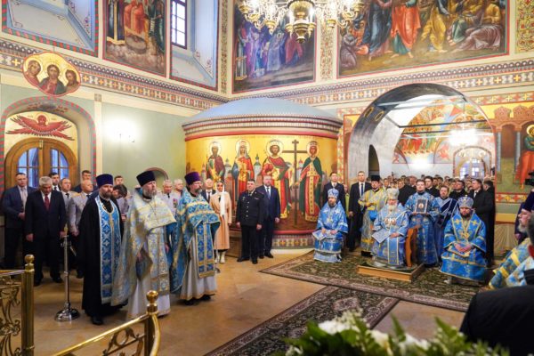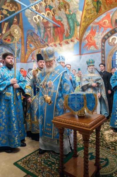 10 декабря 2023 года, в Неделю 27-ю по Пятидесятнице, праздник иконы Божией Матери, именуемой «Знамение», Святейший Патриарх Московский и всея Руси Кирилл совершил чин великого освящения храма Знамения иконы Божией Матери за Петровскими Воротами при Главном управлении МВД России по г. Москве. По окончании Литургии Предстоятель Русской Православной Церкви произнес проповедь.