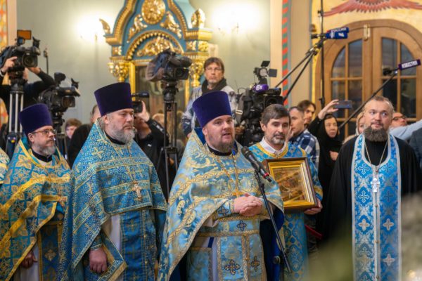 Сегодня особый день. Мы имеем возможность совершить Божественную литургию в этом древнем храме, а икона «Знамение» Пресвятой Богородицы связана с особыми событиями в истории средневековой Руси. К сожалению — а речь идет о XII веке — то было время раздробленности страны. Каждое удельное княжество считало себя суверенным государством, отстаивало всеми правдами и неправдами свои интересы, вступало в междоусобную брань с другими княжествами, и тем самым Русское государство настолько ослаблялось, что становилось легкой добычей для тех, кто пытался овладеть им из-за рубежа.