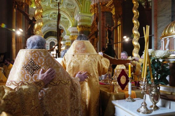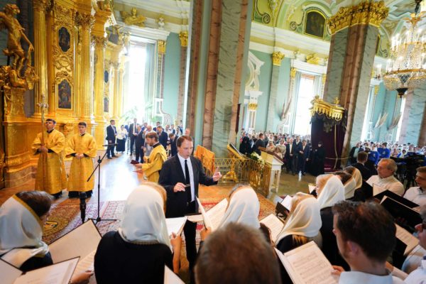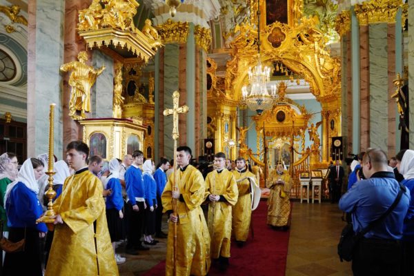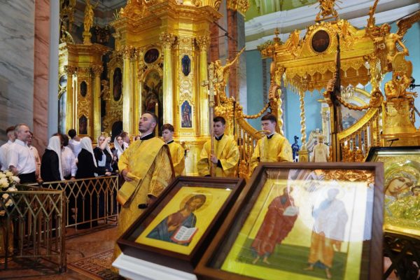Молитвами святых первоверховных апостолов Петра и Павла, покровителей града Петрова, да хранит Господь Санкт-Петербург, землю Русскую и всю нашу Церковь. Аминь.