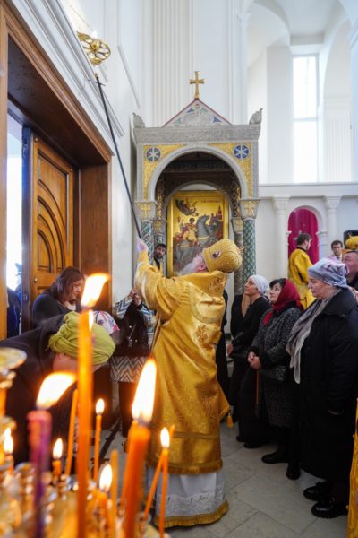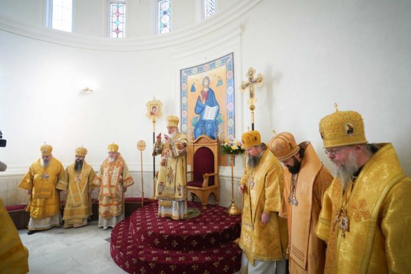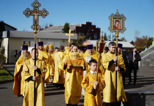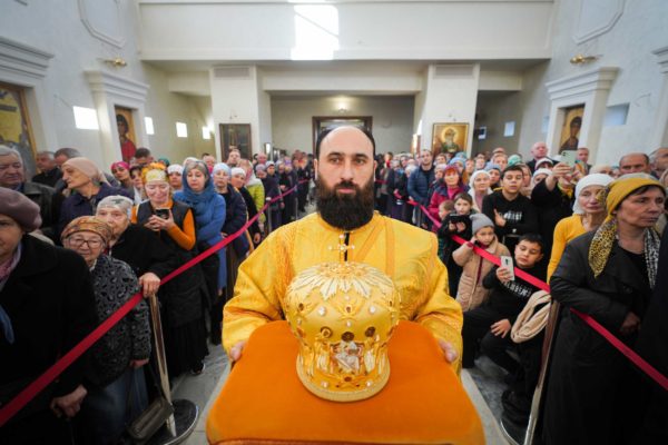 В память о сегодняшнем пребывании я бы хотел преподнести икону Богоматери, называемую «Умягчение злых сердец». Хорошо помню заседание Поместного Собора, на котором, как всегда, были представлены различные точки зрения и проявились даже некие противоречия, которые, не разрушая церковное единство, создают достаточно высокое напряжение между людьми. И в тот момент, когда на Соборе стали раздаваться слова, которые могли привести к достаточно сильному противостоянию, по неведомому для нас промыслу Божию и совершенно неожиданно для меня в храм принесли чудотворный мироточивый образ «Умягчение злых сердец». Конечно, люди стали прикладываться к этому образу, молиться у него, и те, кто помнит это событие, подтвердят, как присутствие иконы изменило атмосферу на Соборе. И не было никакой конфронтации, люди мирно и спокойно высказывали свое мнение, а затем голосовали по очень важным вопросам. На том Соборе был избран нынешний Патриарх, и все прошло в мире и единомыслии. Вот я и подумал, что было бы хорошо список чудотворного образа «Умягчение злых сердец» подарить и этому святому храму, чтобы каждый мог помолиться об умягчении сердец тех, с кем он в конфликте, и об умягчении своего собственного сердца, о мире, межнациональном мире, о согласии в обществе, о способности всех нас вместе жить, трудиться во славу Божию и на благо нашего Отечества. Пусть Покров Пречистой Царицы Небесной через образ «Умягчение злых сердец» пребывает над всеми вами. Аминь.