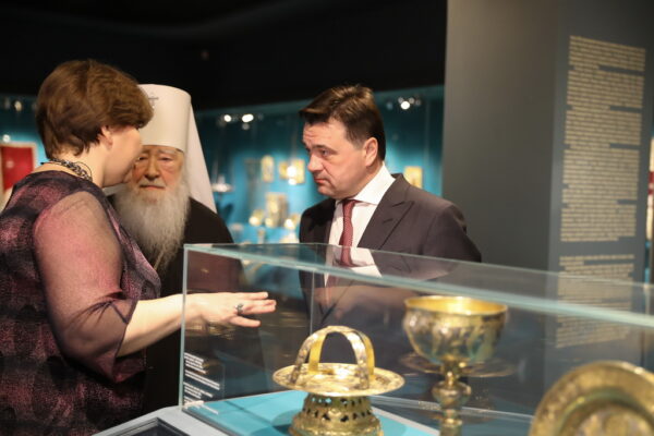 Обращаясь к присутствующим, Андрей Юрьевич сказал: «Мы уделяем большое внимание развитию музея “Новый Иерусалим”. Выставка Фаберже была очень успешна, и сейчас мы представляем следующую — “Русское искусство”, где представлены и церковные предметы, и картины наших художников. Во время Великой Отечественной войны богатства из ризниц русских монастырей были вывезены и сохранены в Алма-Ате, теперь представлены у нас в постоянном режиме».