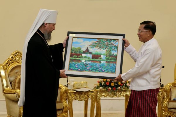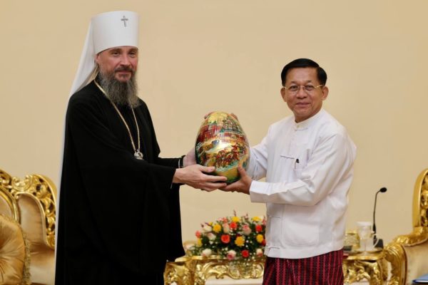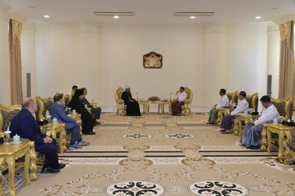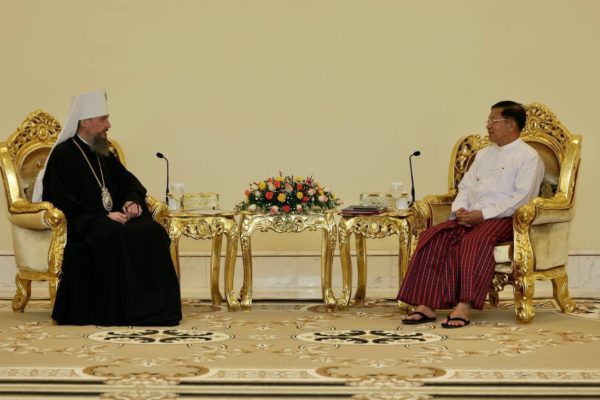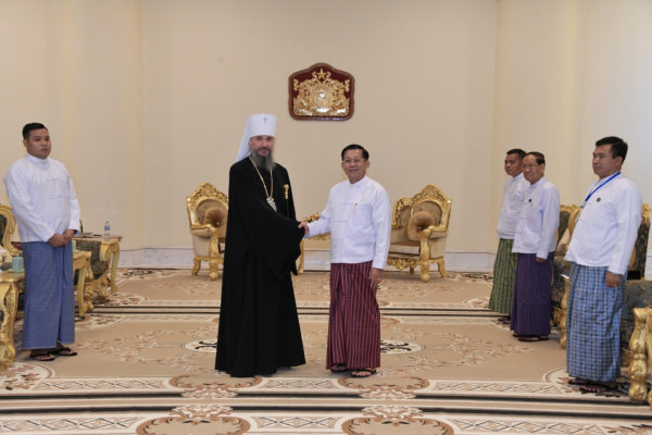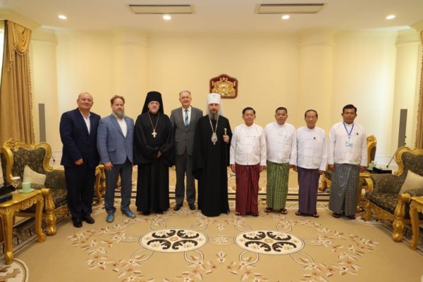 На встрече с председателем Государственного административного совета Республики Союз Мьянма старшим генералом Мин Аун Хлайном митрополит Сергий выразил благодарность властям за поддержку присутствия Русской Православной Церкви в стране, направленного на обеспечение духовной поддержки соотечественников, временно или постоянно проживающих в Мьянме. Собеседники обсудили позитивный потенциал контактов в религиозной сфере для развития отношений между Россией и Мьянмой.