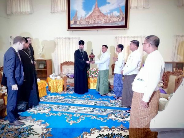 На следующий день состоялась встреча Патриаршего экзарха Юго-Восточной Азии с заместителем министра по делам религии и культуры Республики Союз Мьянма Эй Туном. Собеседники обсудили вопросы церковной жизни православных верующих в стране.