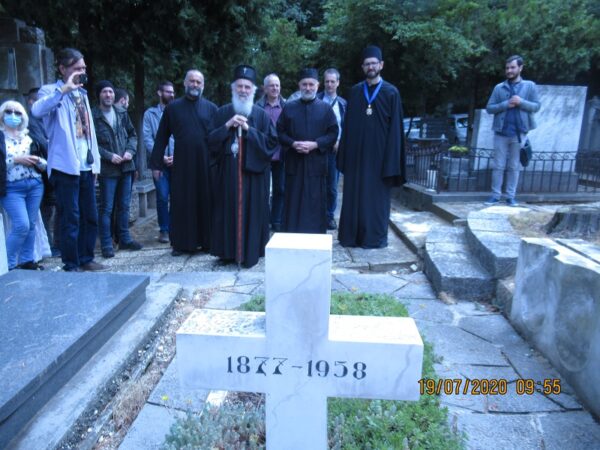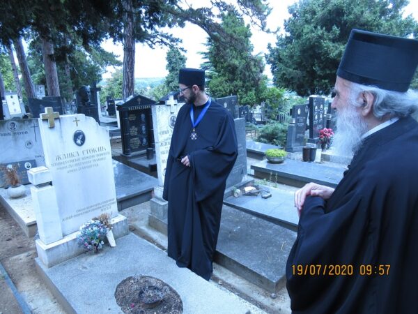 Пошто је одслужио свету Литургију и причестио вернике, Његова Светост Патријарх је обишао околне гробове знаменитих Срба и Српкиња који су се, као чудесно гнездо Божје светлих успомена, свили око маленог храма, гробног места ктитора и добротвора Николе Спасића. На челу малене колоне свештеника и верника, Патријарх је прво обишао гроб великог српског пријатеља и саборца из Првог светског рата Арчибалда Рајса, затим се упутио на гроб највеће српске књижевнице Исидоре Секулић, којом приликом је посебно назначио скромност једне од највећих Српкиња, на чијем гробу је само малени, једноставан крст од белог мермера на коме пише: Исидора Секулић (на позадини крста уклесано је једино 1877-1958). Затим су Патријарх, свештеници и верници обишли и гроб највеће српске глумице између два светска рата Жанке Стокић, која је 1945. године тешко пострадала од тадашњих комунистичких власти, потом гроб војводе Стевана Книћанина, као и других знаменитих Срба и Српкиња.
