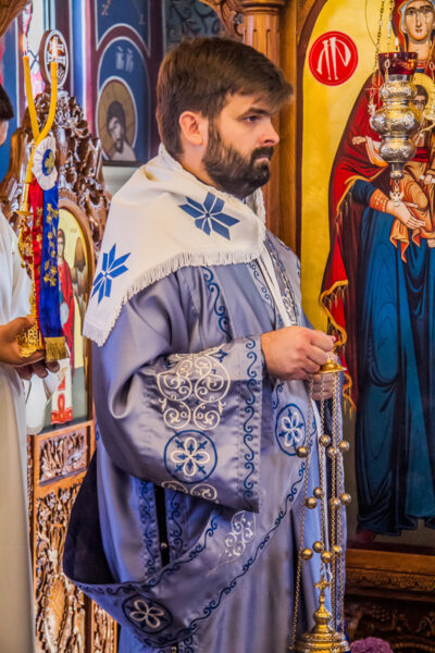 Саслуживали су протојереј-ставрофор Божо Бакајлић, архијерејски намесник земунско-новобеоградски; јереј Анђелко Додер, старешина храма; протођакон Стеван Рапајић и ђакон Радомир Врућинић, професор Богословије Свети Сава у Београду.