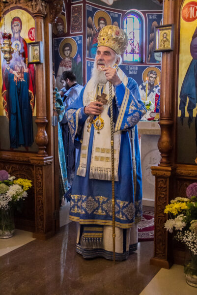 Његова Светост Патријарх српски г. Иринеј служио је 6. септембра 2020. године свету архијерејску Литургију у храму Светог Атанасија Великог у београдском насељу Плави хоризонти.