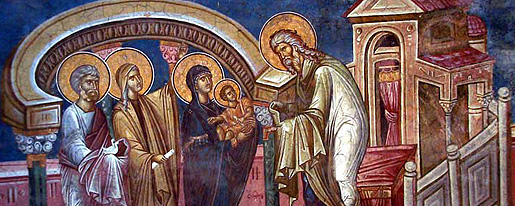 У четрдесети дан по Рождеству донесе Пресвета Дева свог божанског Сина у храм јерусалимски да Га, сходно закону, посвети Богу и себе очисти (Левит 12, 2-7; Исход 12, 2).