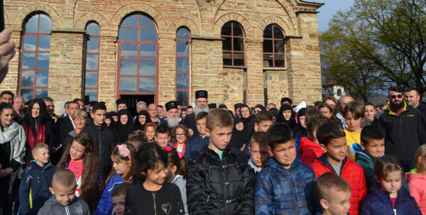 После поклоњења у храму Успења Пресвете Богородице, Патријарх се срео са већом групом окупљене деце и верника из Грачанице и околине којима се обратио речима охрабрења и наде и поделио иконице.